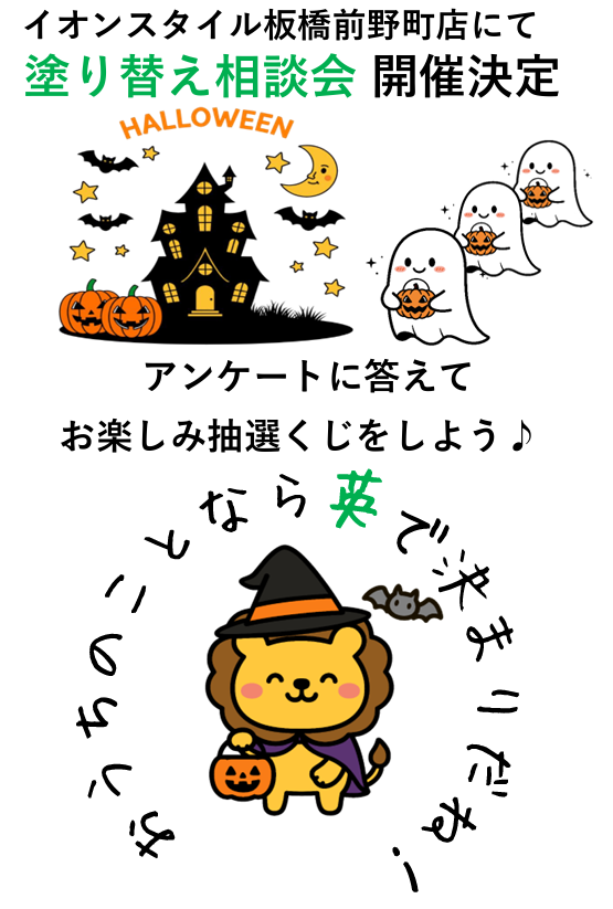 塗り替え相談会 2025年10月23日(木) こんにちは。 英 -はなぶさ- スタッフです。 きたる10月25日(土)午前10時より、イオンスタイル板橋前野町店にて【塗り替え相談会】を開催いたします。アンケートにお答えいただくと、1等お米が当たる・・・