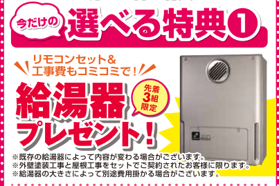 【特典1】給湯器を実質0円でプレゼント!(施工費込)
